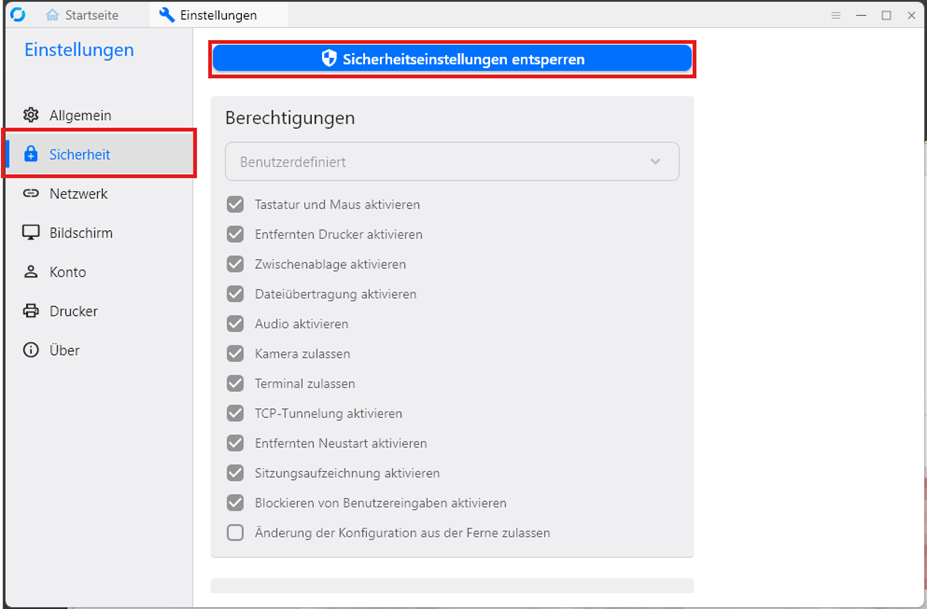 In dem Fenster, das sich nun öffnet, müssen Sie auf „Sicherheitseinstellungen entsperren“ klicken. Dies ist der Schritt für den Administratorenrechte benötigt werden:
